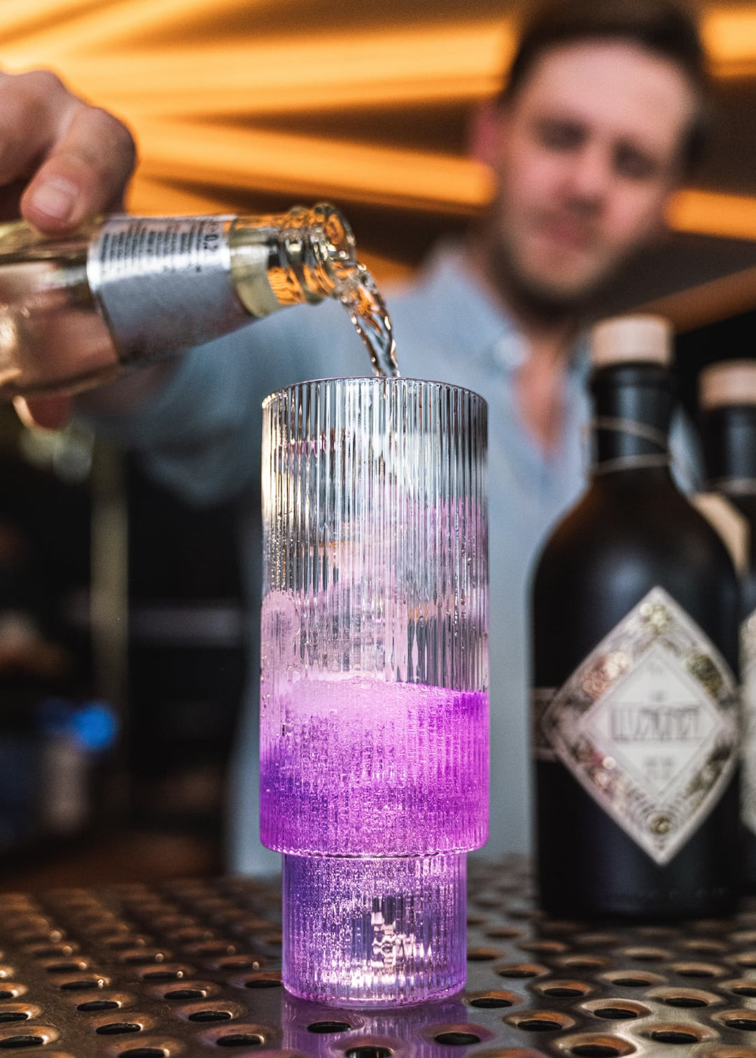 Alles begann 2015 mit Tim, Max und einer magischen Idee: Ein tiefblauer Gin, der geschmacklich Neues wagt – und einen besonderen Twist auf Lager hat. Mit Tonic gemischt wandelt er sich von einem satten Blau in ein sanftes Hellrosa: Der Illusionist Dry Gin war geboren!
