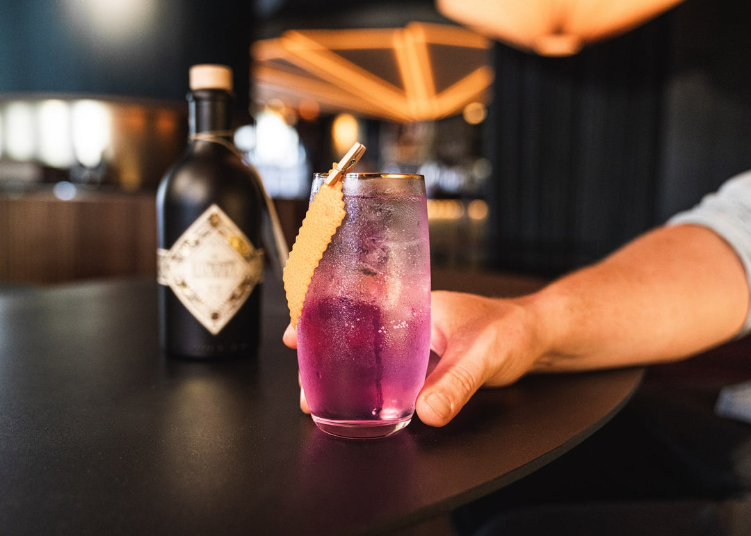 Der Illusionist Masquerade vereint die frischen Aromen von Akazienblüten, Zitronengras, Wacholder und Piment in einem eleganten alkoholfreien Medley. Genau wie sein großer Bruder mit 45% Alkoholgehalt, verwandelt er sich bei Zugabe von Tonic Water von tiefblau in sanftes Rosa. Er ist die perfekte Grundlage für alkoholfreie Cocktails auch jenseits von Gin & Tonic. Null Alkohol, unendliche Möglichkeiten.